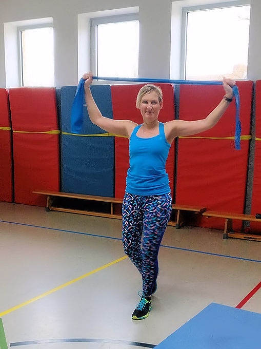 Das heißt: erst eine Runde Power, dann eine Kräftigung für Bauch Beine Po, Arme und Rücken und zum Schluss eine ausgiebige Dehnung!